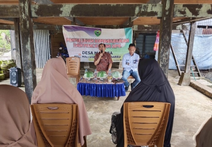 BARRU | Kepala Dinas Kependudukan Kabupaten Barru, mengelar penyuluhan terkait Kependudukan dan Pencatatan Sipil, di Dusun Alakkang, Desa Manuba, Kecamatan Mallutasi, Kabupaten Barru, Sulsel, Sabtu (17/12/2022) Siang.