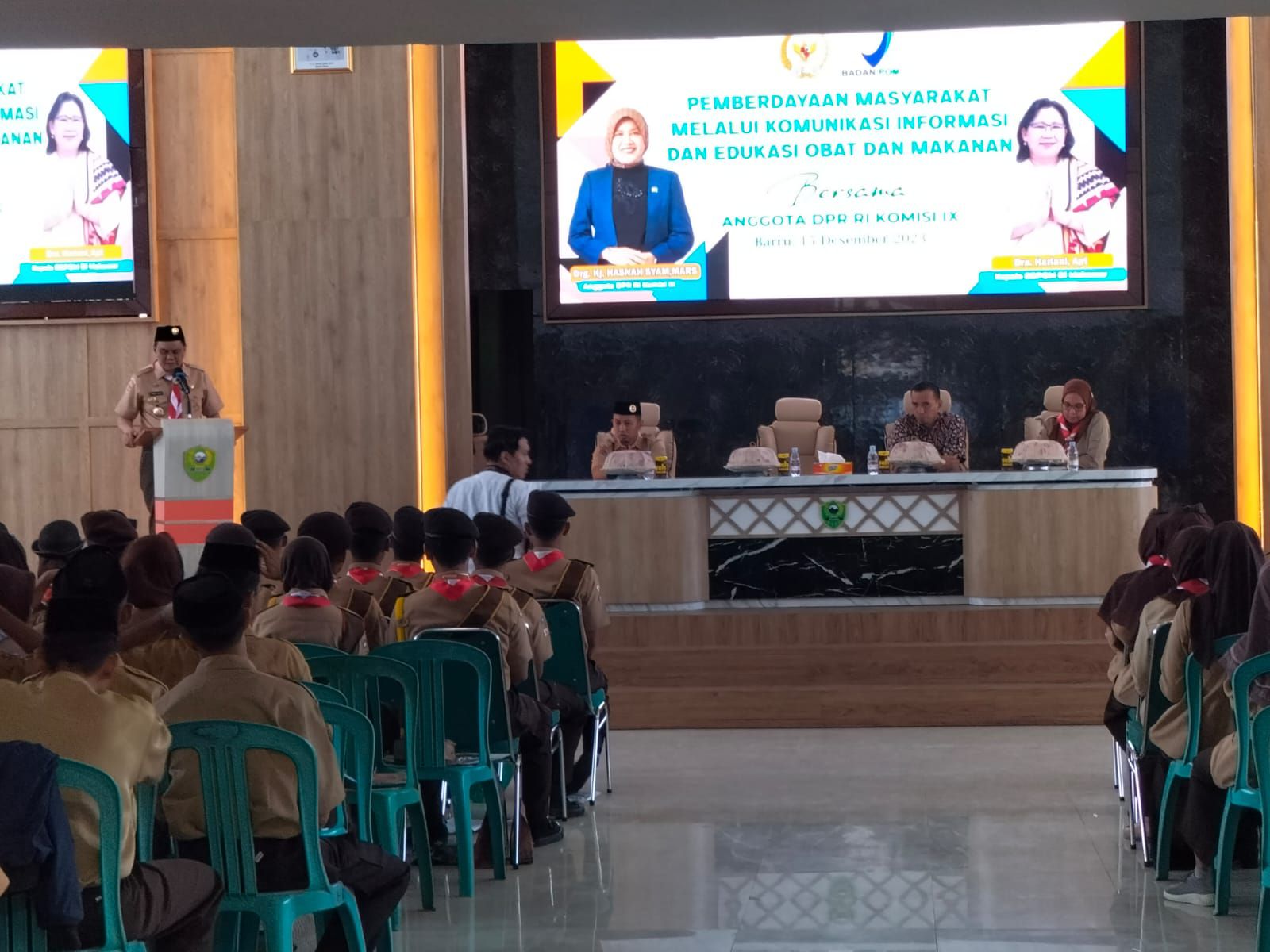Turut hadir dalam sosialisasi ini, Kepala BBPOM Makassar Ana Adriani, S.Si. A.Pt. M.Si., Kadis Kesehatan Barru dr. Amis Rifai, Tokoh Pemuda Teguh Iswara Suardi dan para pembina Pramuka Kwarcab Barru serta undangan lainnya.