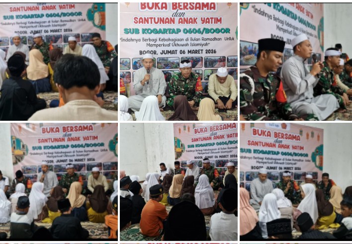 BOGOR – Sub Komando Garnisun Tetap (Kogartap) 0606/Bogor menggelar acara Buka Puasa Bersama dan Santunan Anak Yatim pada Bulan Ramadhan 2026, yang bertempat di Mess Garnisun Bogor Jalan Parung Banteng,Katulampa Bogor Timur,Jumat (6/3/26).