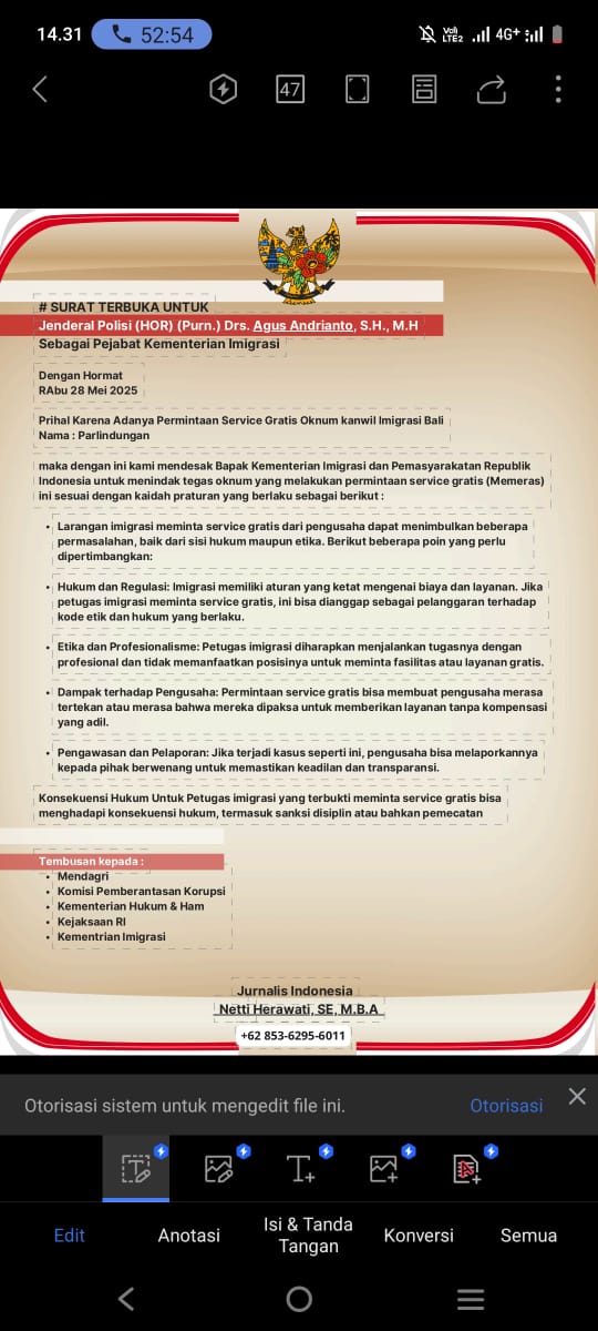 Surat Terbuka Kepada Mentri Imigrasi Indonesia