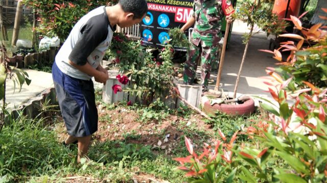 Babinsa Koramil-04/Ckp Kodim-0510/Trs Bantu Warga Berkebun & Penerapan Prokes di Kampung Pancasila