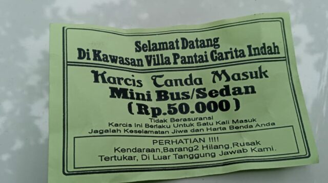 Kawasan Pariwisata Villa Pantai Carita Indah, Diduga Tarif Parkir Mobil dan Motor Terlalu Mencekik leher Pengunjung.