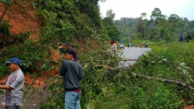 Serbajadi, Aceh Timur di Guyur Hujan deras, hingga Jalan Perlak Lokop Tertimbun Matrial Tanah dan Pohon yang Longsor.