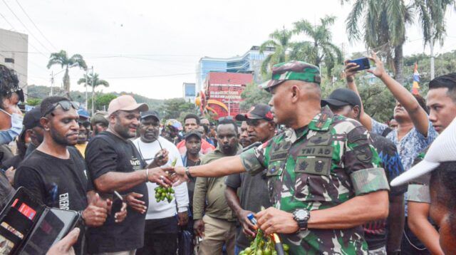 Danrem 172/PWY Berbagi Pinang Di Tengah Demo Happy Di Papua