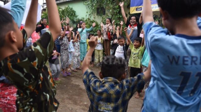 Relawan Pertamina Peduli Gelar Trauma Healing Bagi Pengungsi di Posko Utama Desa Mekarsari