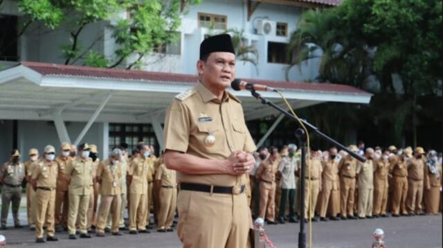 Hari Pertama Kantoran, Bapak Ir H.Suardi Saleh,M.Si Salami para ASN dan Pejabat Pemda dilapangan Upacara Kantor Bupati Barru