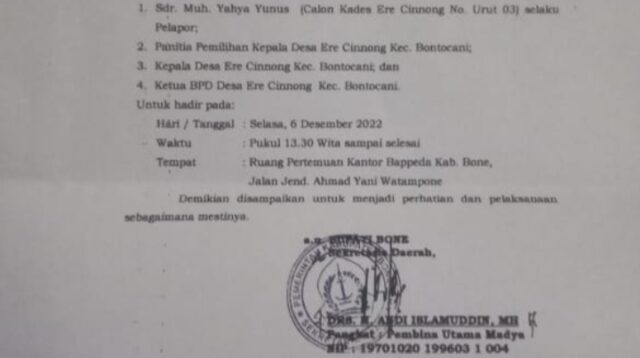 Sekda Bone Tindak Lanjuti Gugatan Indikasi Kecurangan PILKADES Desa Erecinnong Kab.Bone Sulsel.
