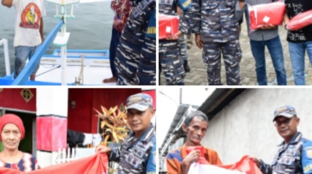 Kobarkan Semangat Kemerdekaan , Babinpotmar Lantamal VI Bagikan Bendera ke warga Pesisir Makassar