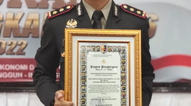 Kapores Kubu Raya AKBP Jerrold H.Y. Kumontoy Terima Reward dari Kapolda Kalimantan Barat.