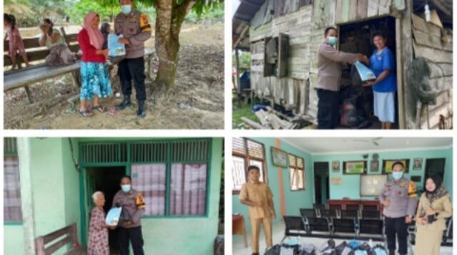Polsek Kampar Kiri Hilir Perduli Bagi Masyarakat Tidak Mampu Terdampak Banjir Di Rantau Kasih