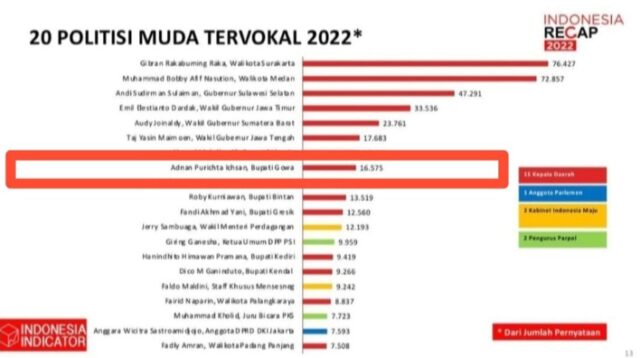 Bupati Gowa Masuk 8 Politisi Muda Tervokal Tahun 2022 Versi Perusahaan Intelijen Media Indonesia Indikator (I2).
