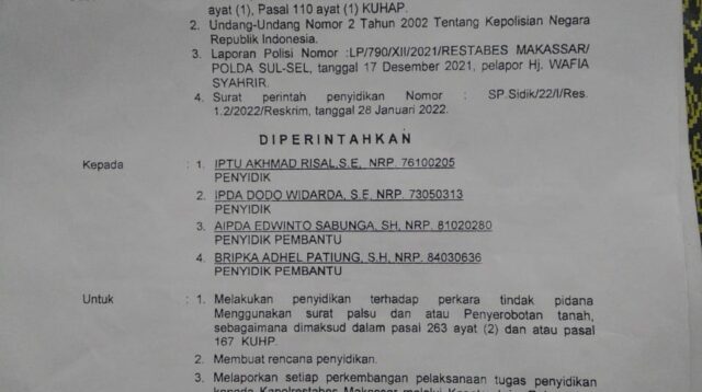 Oknum Penyidik Polrestabes Makassar Diduga Tidak Adil dan Profesional dalam Tangani Kasus 167 “Percuma Lapor Polisi !!!