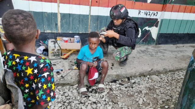 Mau Tampil ? Cukur Rambut di Pos Satgas Yonif Raider 142/KJ