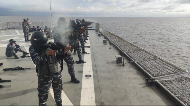Prajurit KRI Tarakan-905 Laksanakan Latihan Menembak Di Laut Seram