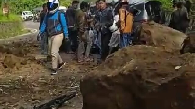 Tebing Cadas Pangeran Ambrol 2 mobil Tertimpa batu besar dan Batu besar belum dievakuasi