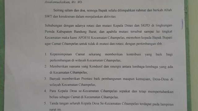 Hasil Musyawarah 10 Kepala Desa, Kecamatan Cihampelas Tolak Rotasi Mutasi Camat Cihampelas terkait Masa Jabatannya 3 Bulan lagi!!