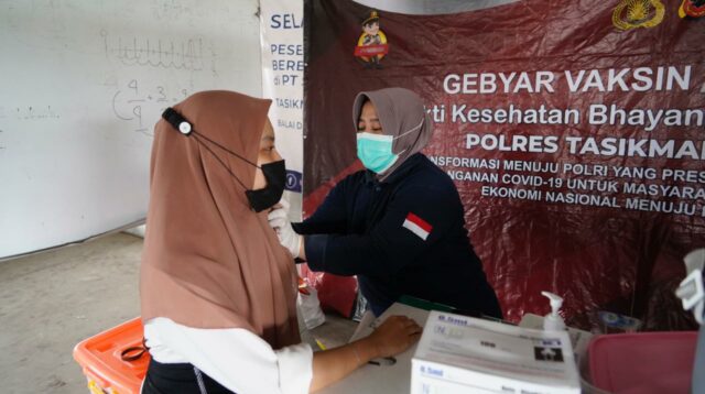Kapolres Tasikmalaya Kota Pantau Gebyar Vaksiin di PT SanSan Saudaratex Jaya dan Ikuti Zoom Meeting Kapolri