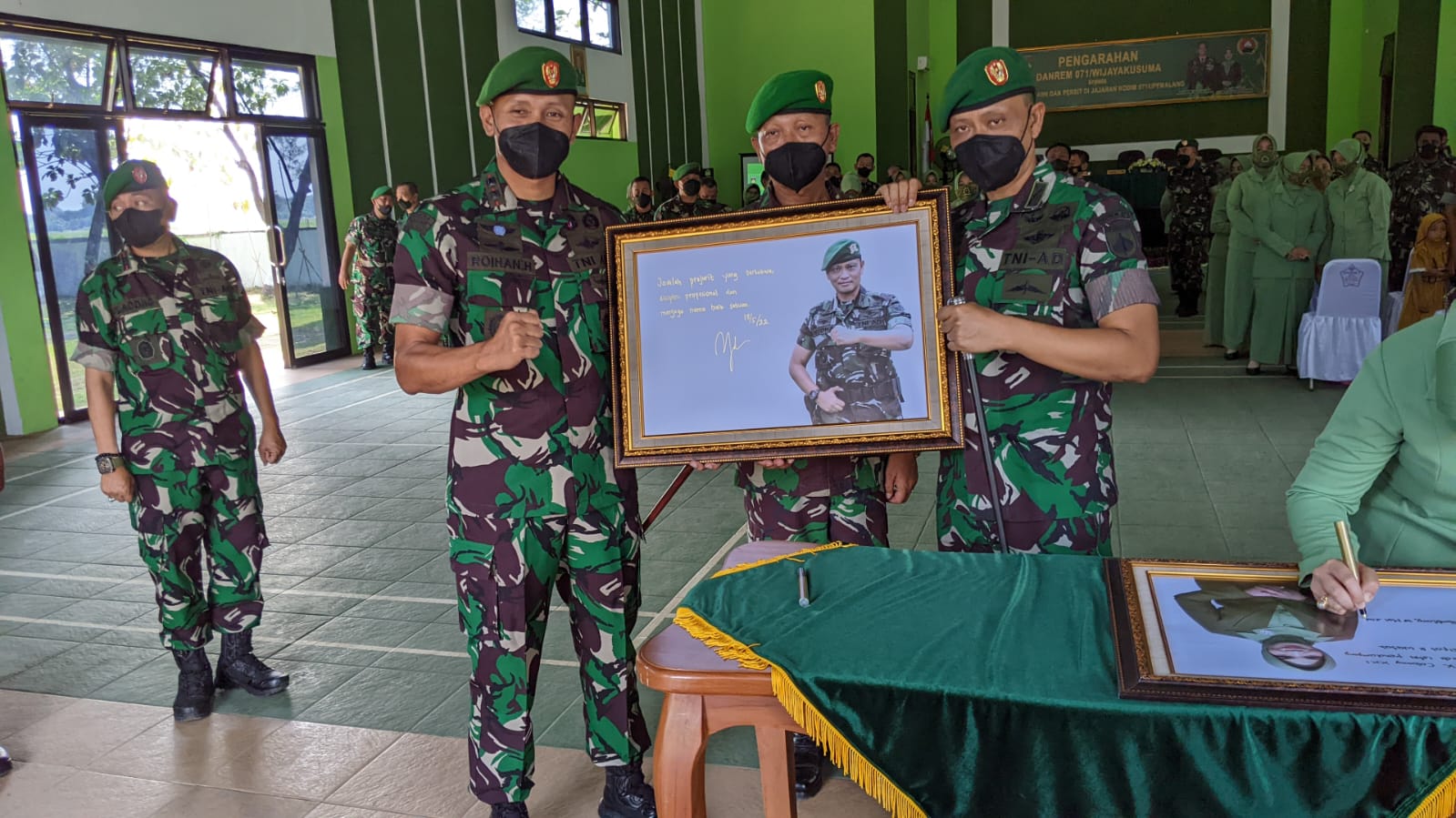Danrem 071/Wijayakusuma beserta istri, yang baru menjabat beberapa waktu lalu sebagai Komandan Korem 071/Wijayakusuma dan Ketua Persit Kartika Chandra Kirana Koorcab Rem 071 ini, karena tugas yang begitu padatnya, baru menyempatkan diri mengunjungi prajurit, PNS beserta Persit secara resmi.