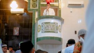 BARRU | Malam ketujuh Ramadhan, Bupati Barru Ir. H. Suardi Saleh, M.Si., sholat tarwih bersama warga di masjid At Taqwa Palanro, Kelurahan Palanro, Kecamatan Mallusetasi, Kabupaten Barru, Jumat (8/04/2022).