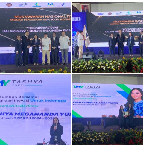 INFOINDONESIAINEWS.COM | JAKARTA – Dewan Perwakilan Pusat (DPP) Asosiasi Pengusaha Jasaboga (APJI) mengadakan Musyawarah Nasional (Munas) yang ke IV pada periode masa bakti 2018-2024 pada tanggal 1 – 3 Mei 2024 di Hotel Bidakara Jakarta. Munas APJI resmi dibuka oleh Menteri Pariwisata dan Ekonomi Kreatif (Menparekraf), Sandiaga Salahudin Uno. Adapun tema yang diusung dalam Munas APJI ke IV yakni ‘Kolaborasi APJI dalam Mewujudkan Indonesia Emas 2045’. Dalam Munas APJI ke-IV, Tashya Megananda Yukki terpilih sebagai Ketua Umum DPP APJI periode 2024-2029 menggantikan Ketua Umum APJI sebelumnya Rahayu Setiowati secara aklamasi.