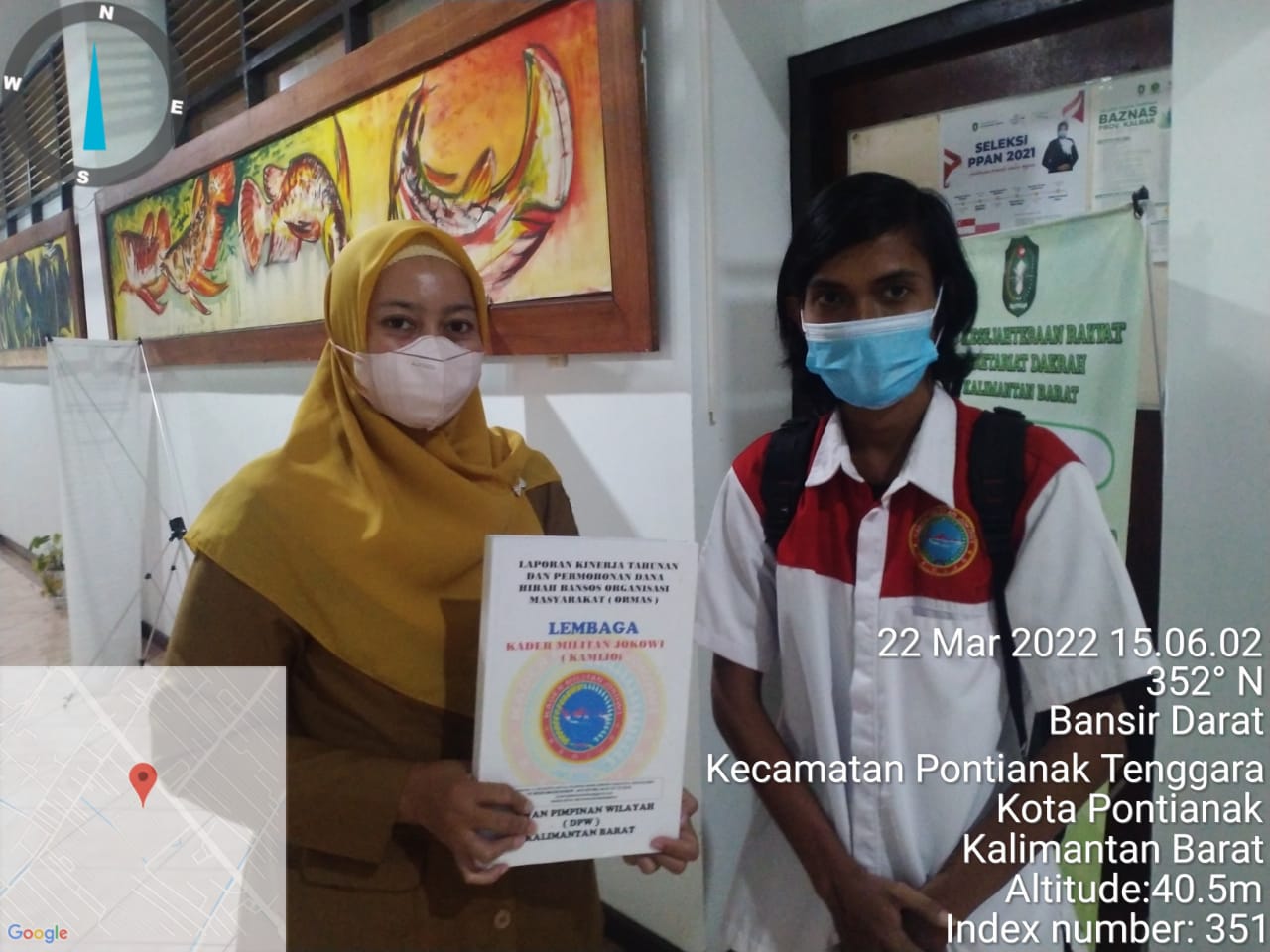 Demi mentaatti aturan UU serta peraturan Menteri tentang Organisasi Masyarakat (Ormas) menyerahkan laporan kinerja tahunan 2021/2022 ke Kantor Kesbangpol Provinsi Kalimantan Barat yang berada persis dibelakang kantor Gubernur Kalbar Jl.Jendral Ahmad Yani Kelurahan Benua Melayu Darat Kec.Pontiank Selatan, pada Hari Selasa, Tanggal 22 Maret 2022, Pukul 14:41 ,yang diterima langsung staf Kesbangpol Ibu Santy.