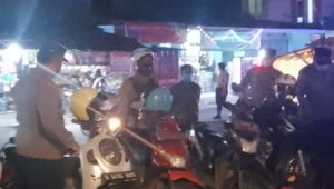 KOTAMADYA TANGERANG, BANTEN | Guna mengantisipasi penyebaran, penularan virus Covid-19 varian Omicron dan pendisiplinan Prokes di PPKM Level 3, Kapolsek Jatiuwung bersama Waka Polsek, Kanit Binmas dan 10 anggota personel melaksanakan kegiatan Operasi Yustisi PPKM Level 3 dan bagikan Masker, Jum’at (04/03/2022), pukul 21:00Wib.