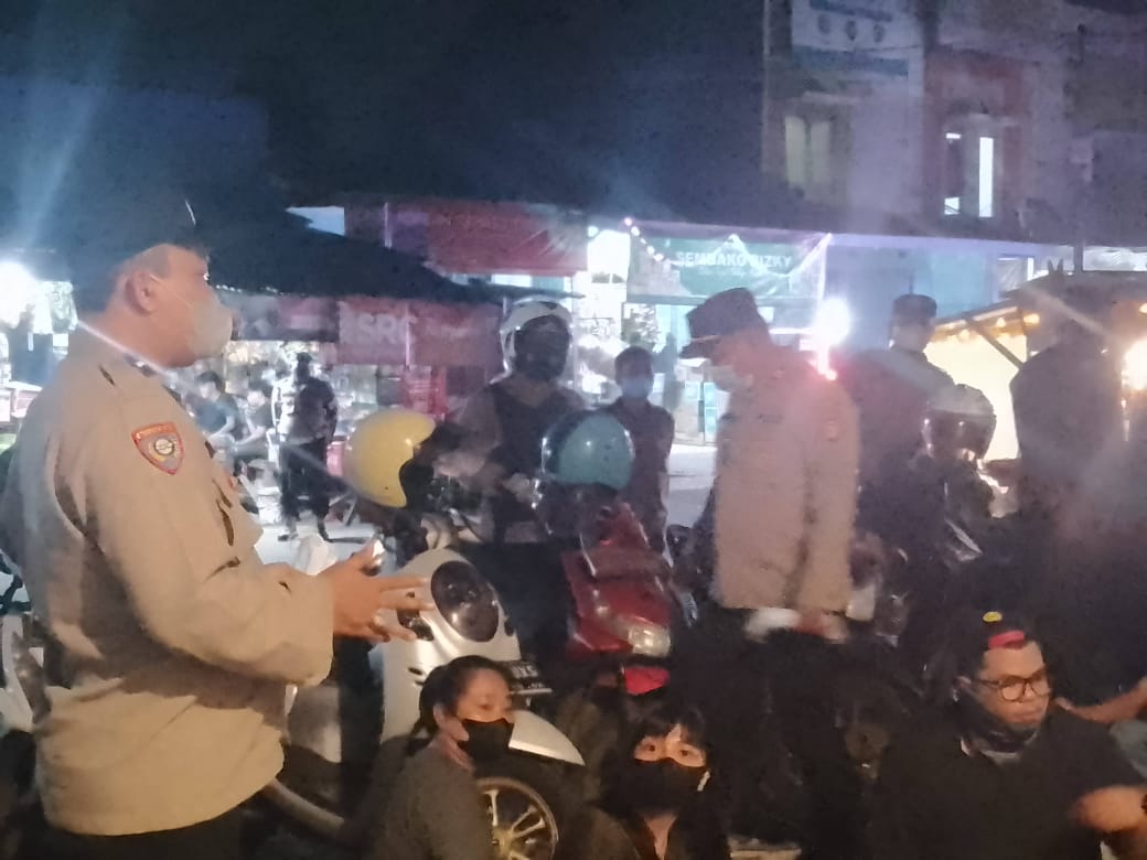 KOTAMADYA TANGERANG, BANTEN | Guna mengantisipasi penyebaran, penularan virus Covid-19 varian Omicron dan pendisiplinan Prokes di PPKM Level 3, Kapolsek Jatiuwung bersama Waka Polsek, Kanit Binmas dan 10 anggota personel melaksanakan kegiatan Operasi Yustisi PPKM Level 3 dan bagikan Masker, Jum’at (04/03/2022), pukul 21:00Wib.