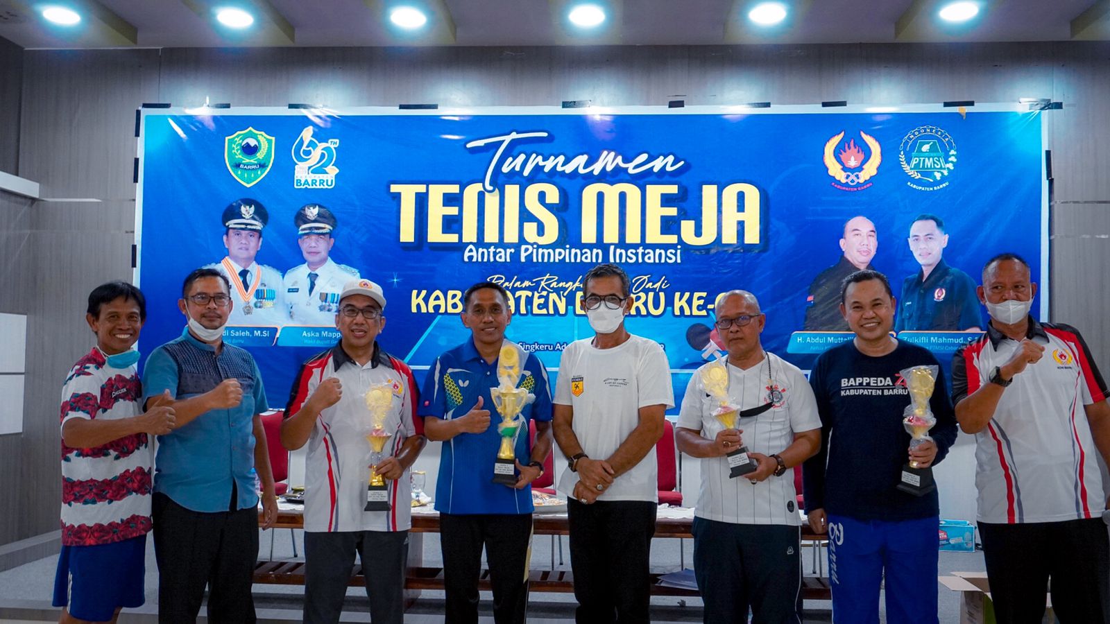 Berikut para juara pertandingan tenis meja antar pimpinan yang dilaksanakan dalam rangka Hari Jadi Barru Ke-62,