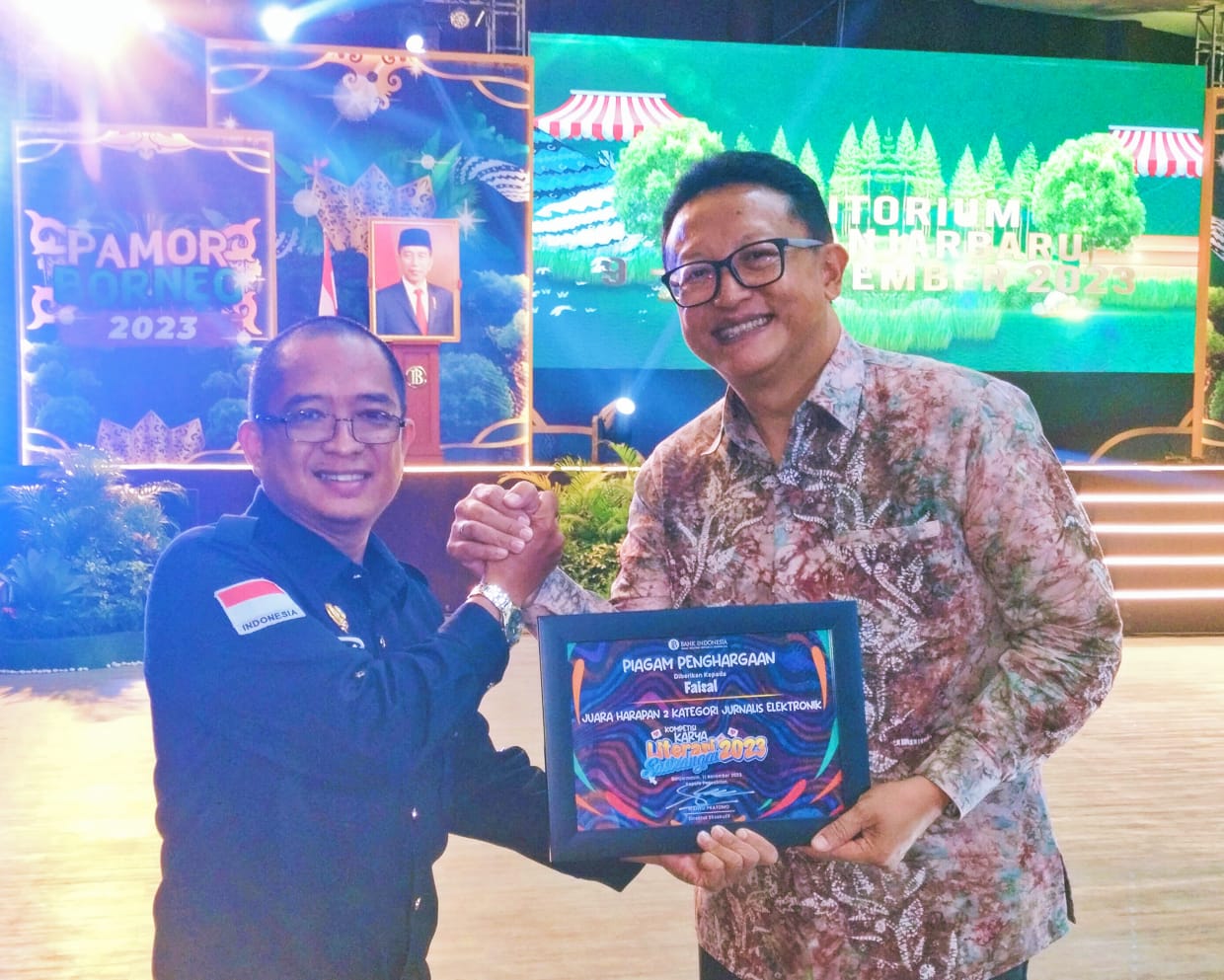 infoindonesiainews.com | BANJARBARU – Bertepatan di Hari Ulang Tahun ke-16 Persatuan Pewarta Warga Indonesia (PPWI) yang jatuh pada tanggal 11 Nopember 2023, Sekretaris PPWI Kalsel, Faisal meraih penghargaan Kompetisi Karya Literasi Sasirangan (KKLS) 2023. Penyerahan penghargaan tersebut dilakukan pada puncak acara kegiatan Pamor Borneo 2023, yang bertempat di Auditorium Universitas Lambung Mangkurat, Jalan Komplek Aulia Raya, Loktabat Utara, Kecamatan Banjarbaru Utara, Kota Banjarbaru, Kalimantan Selatan, Sabtu (11/11/2023).