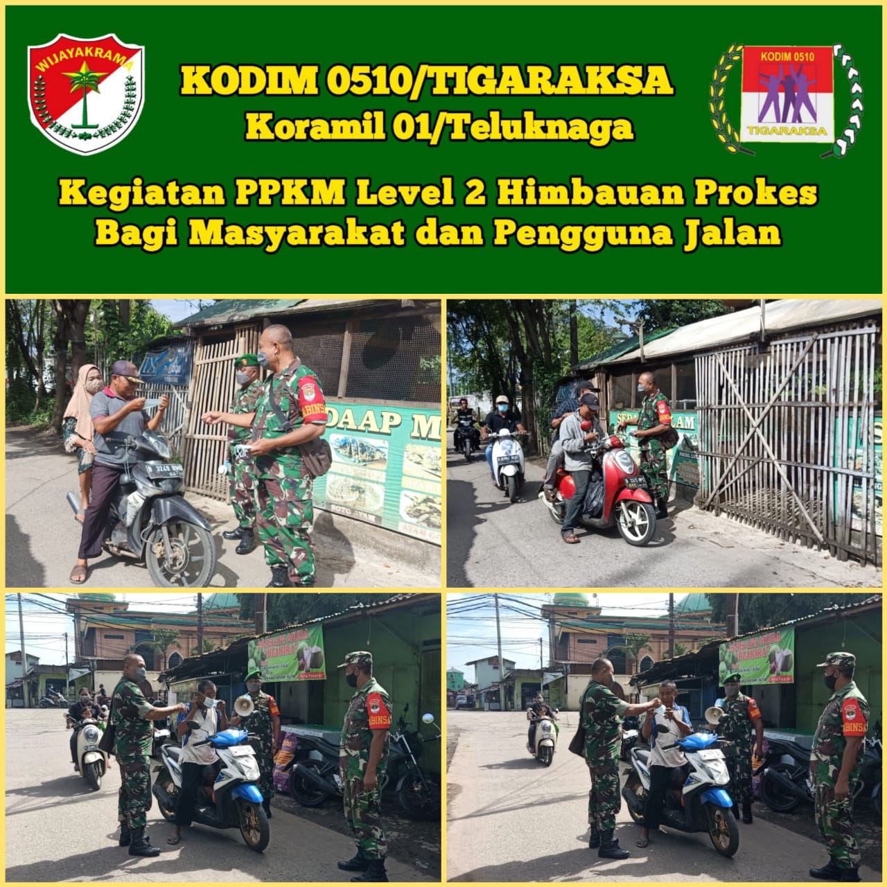 TELUKNAGA , TANGERANG, BANTEN | Upaya menekan penyebaran wabah covid 19 Koramil 01/Tln Kodim 0510/ Trs laksanakan Ops Yustisi masa pemberlakuan pembatasan kegiatan masarakat ( PPKM) level 2.