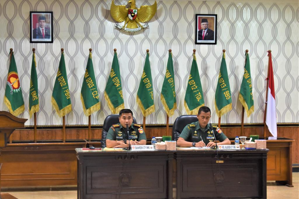 infoindonesiainews.com | BANYUMAS – TNI Manunggal Membangun Desa (TMMD) 117 akan segera bergulir, tepatnya pada 12 Juli 2023 mendatang. Menilik hal itu, guna kelancaran dan keberhasilan pelaksanaan kegiatan program TMMD reguler 117 dan Sengkuyung diwilayah jajaran Korem 071/Wijayakusuma, para Dandim sejajaran Korem 071/Wijayakusuma menjelaskan program kegiatan TMMD tersebut kepada Danrem 071/Wijayakusuma selaku Penanggungjawab Keberhasilan Pelaksanaan (PKP) TMMD 117 dan Sengkuyung, melalui paparan Dandim jajaran Korem 071/Wijayakusuma. Rabu (5/7/2023) di Aula Jenderal Sudirman Makorem 071/Wijayakusuma, Sokaraja, Banyumas.