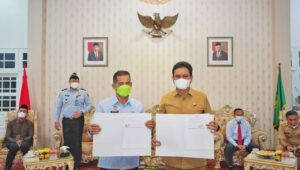 Jelang Hari Jadi Barru Ke-62, dilakukan Penandatanganan Memorandum Of Understanding (MoU) dan Perjanjian Kerja sama tentang Pelaksanaan Layanan Publik di Mall Pelayanan Publik Kabupaten Barru antar Pemerintah Daerah Kabupaten Barru dengan Kantor Kementerian Hukum dan HAM Provinsi Sul-Sel, Kejaksaan Negeri Barru Kantor Imigrasi Kelas II Parepare dan Kantor Pelayanan Perbendaharaan Negara Parepare, bertempat di Rujab Bupati Barru, Selasa (15/2/2022).