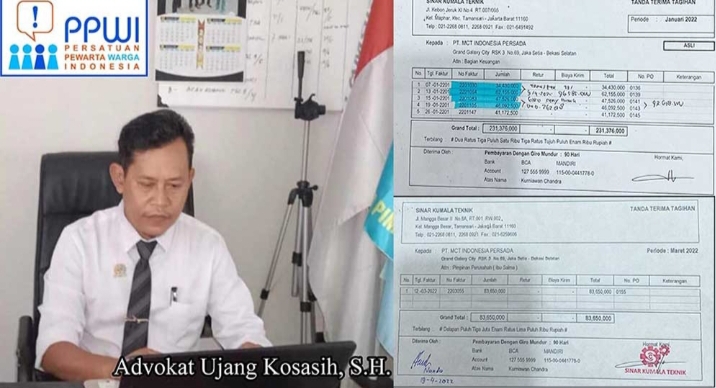 Ujang Kosasih kemudian menjelaskan bahwa berdasarkan hasil penelusuran team-nya, ternyata ditemukan invoice atau tagihan dari Toko Sinar Kumala Teknik yang ditujukan kepada PT. MCT Indonesia Persada. Merujuk kepada bukti dan data tersebut, semestinya yang diberitakan adalah PT. MCT Indonesia Persada.