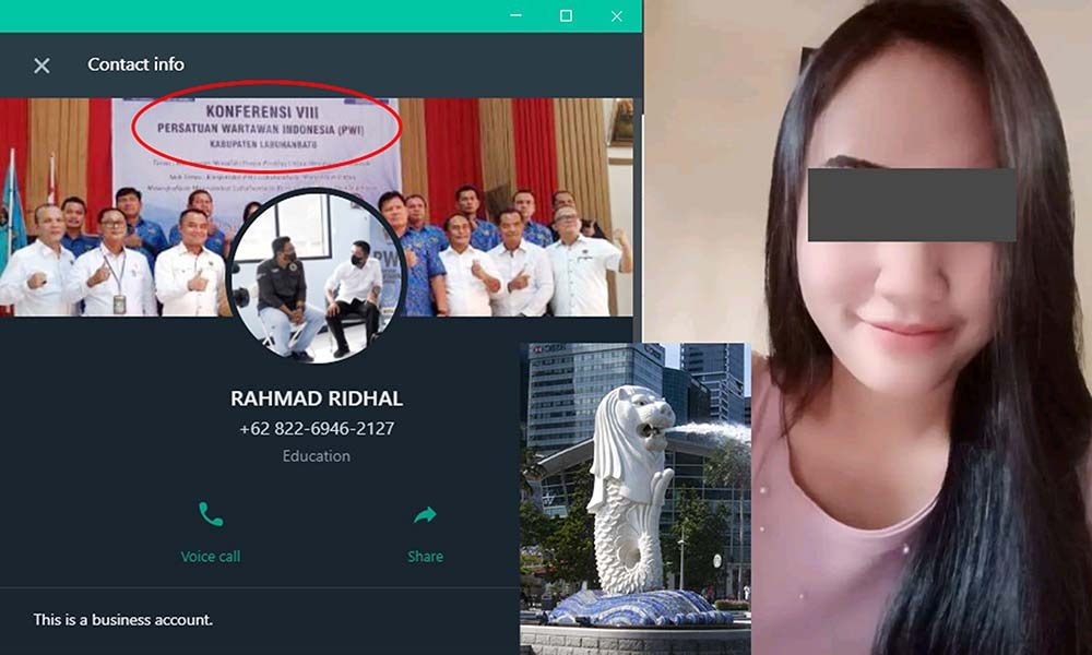 Sebagai tambahan informasi, berdasarkan keterangan profil nomor WhatsApp atas Nama Rahmad Ridhal, terlihat sebuah foto dengan latar belakang sebuah spanduk bertuliskan “KONFERENSI VIII PERSATUAN WARTAWAN INDONESIA (PWI) KABUPATEN LABUHANBATU”. Dari foto ini dapat diduga bahwa orang yang mengaku Rahmad Ridhal ini kemungkinan tergabung di organisasi PWI, khususnya PWI Labuhanbatu, Sumatera Utara. Sangat mungkin juga bahwa Rahmad Ridhal ini adalah pengurus PWI Labuhanbatu, dan tinggal di Labuhanbatu. Semoga dugaan ini tidak benar adanya. (TIM/Red)