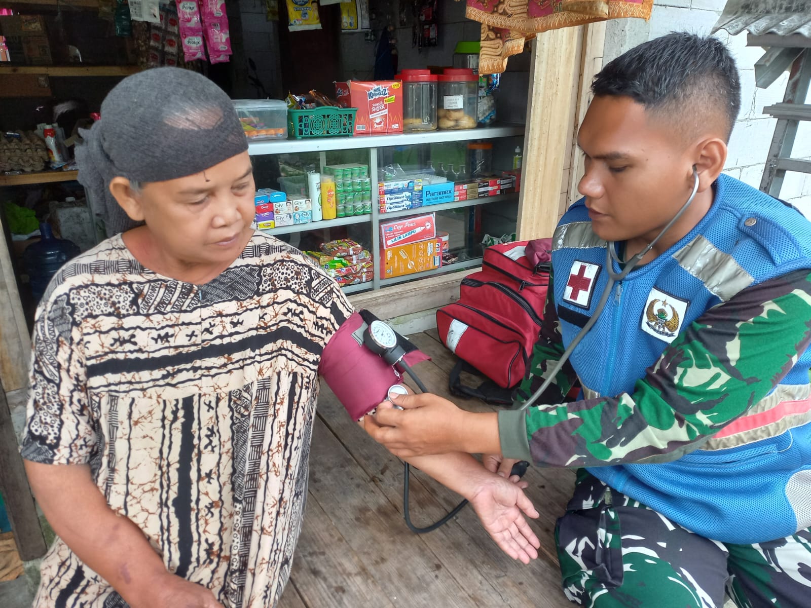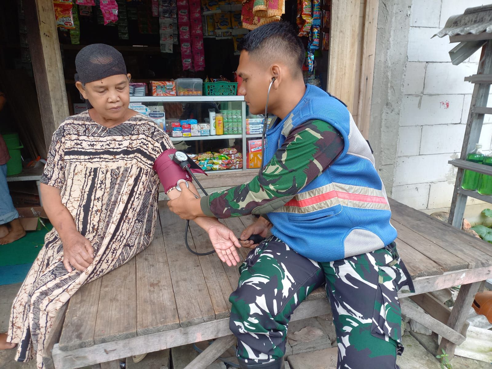INFOINDONESIAINEWS.COM | BEKASI- Selain mahir didalam pengerjaan kegiatan fisik, Tim Kesehatan Satgas TMMD Ke 119 Kodim 0509 Kabupaten Bekasi turut serta untuk peduli akan kesehatan Masyarakat di Desa Karang Mukti , RT 03/05, Kecamatan Karang Bahagia, Senin,( 18/3/2024).