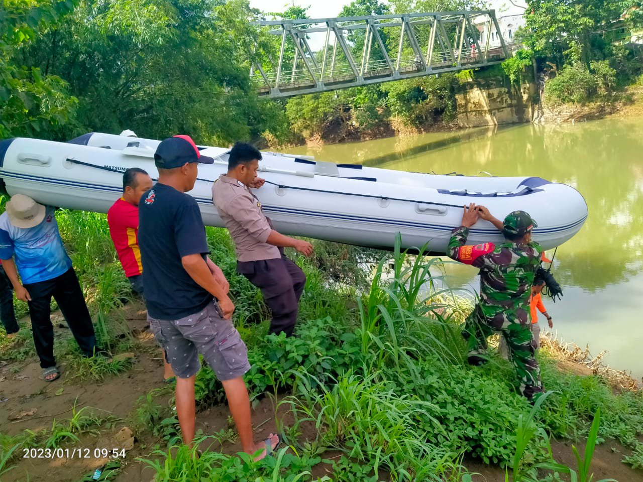 BARRU | Tim Tanggap Bencana Desa Lompo Tengah selenggarakan pelatihan pengoperasian perahu karet yang dilaksanakan di bantaran sungai ele Desa Lompo Tengah, Kamis (12/01/2023).