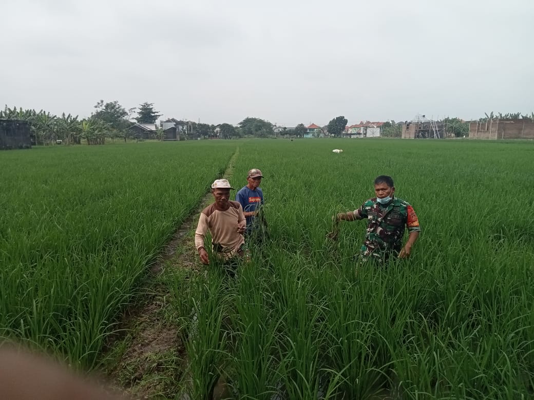 RT 05/08 kelurahan Karangasem Babinsa Kelurahan Karangasem Koramil 01/Laweyan Kodim 0735/Surakarta Sertu Widada dan Serda M Sitanggang (anjangsana) kepada Petani di wilayah binaan, guna mendengarkan keluhan petani terkait kendala dalam mengolah lahan pertanian selama musim tanam, Kamis (24/03/2022)