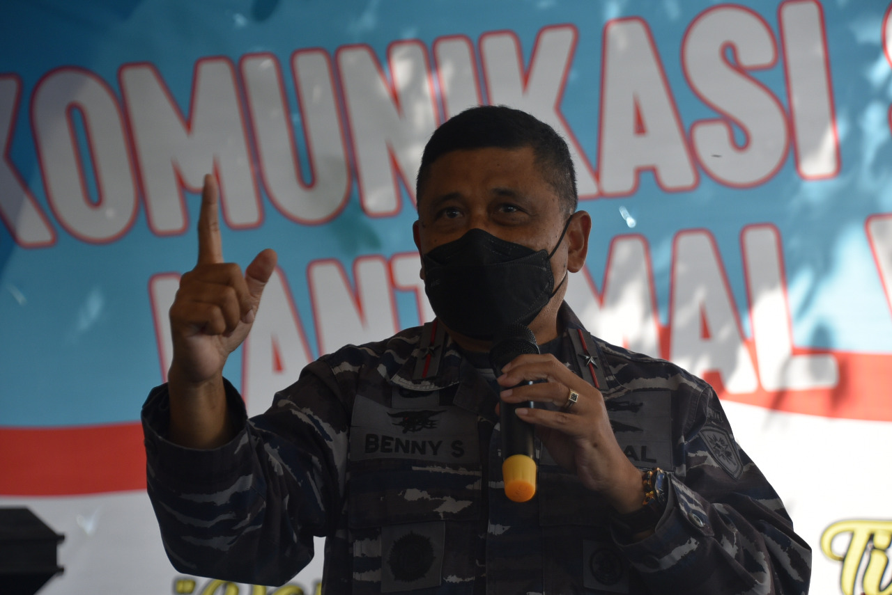 Pembekalan bela Negara disampaikan oleh Komandan Lantamal VI (Danlantamal VI Makassar) Laksamana Pertama TNI Dr. Benny Sukandari, SE., MM, CHRMP kepada 100 peserta kegiatan Komsosmar Lantamal VI T.A. 2022