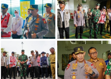 INFOINDONESIA – MERAK | Kapolri Jenderal Listyo Sigit Prabowo bersama dengan lintas sektoral terkait meninjau Pelabuhan Merak, untuk memastikan kesiapan arus mudik dan balik Hari Raya Idul Fitri tahun 2023.