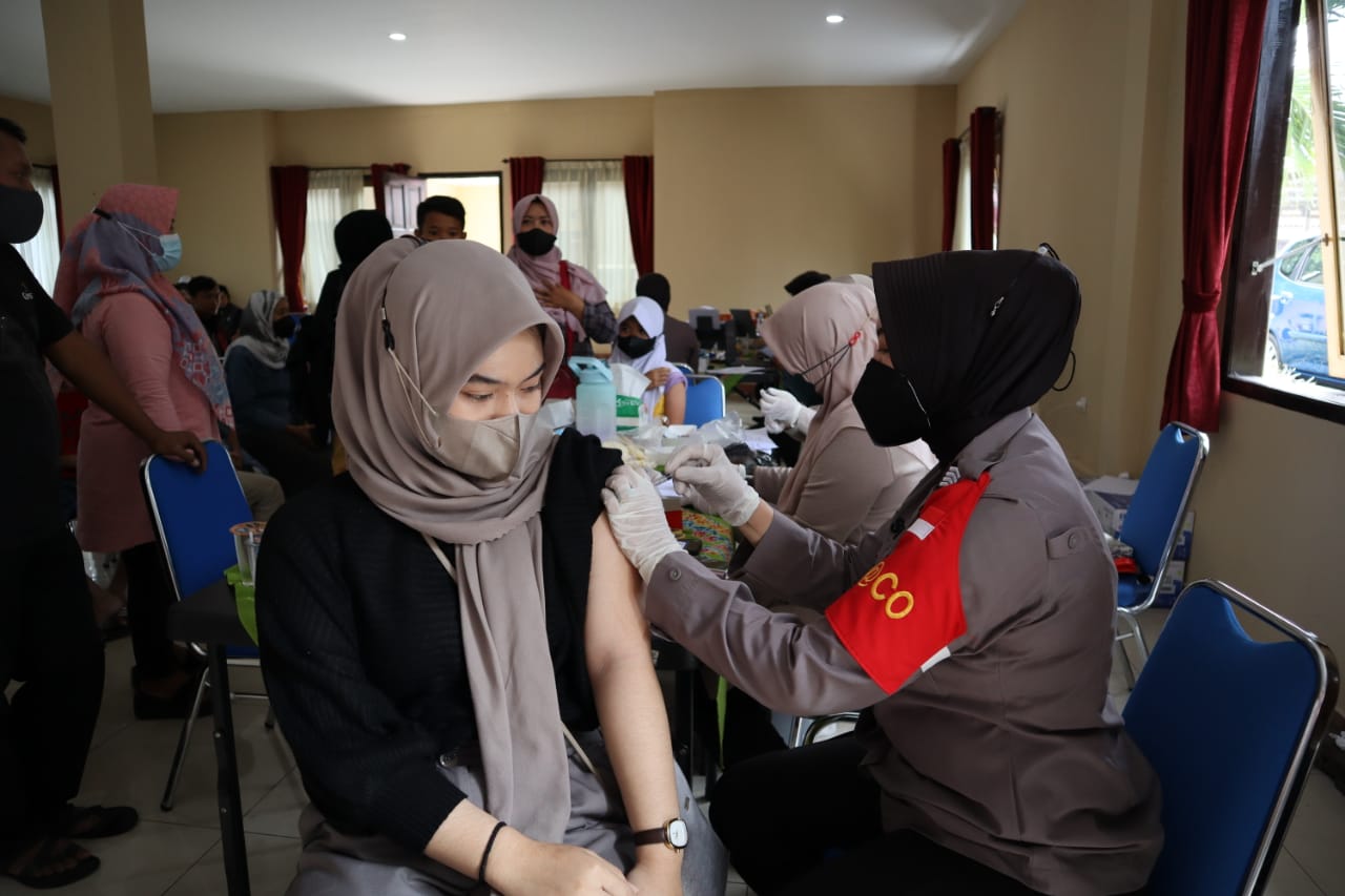TASIKKOTA | Hari libur Polres Tasikmalaya Kota tetap melaksanakan Gebyar Vaksin Presisi dibeberapa tempat dan di Aula Mitra Bhayangkara Aspol Bojong, (04/03/2022).