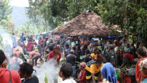 INTAN JAYA | Tidak ada tempat yang tidak dibuat berubah dengan kekompakan TNI-POLRI di Intan Jaya. Mamba Bawah yang dulunya hening, dibuat ceria oleh ulah TNI-POLRI yang kembali hadir di tengah-tengah masyarakat. Acara penutupan kedukaan keluarga Sani, langsung dihadiri oleh para Ksatria pimpinan Letkol Inf Ardiansyah alias Raja Aibon Kogila, Sabtu (5/11/22).