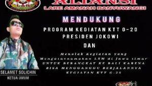 BANYUWANGI | Ketua Umum Aliansi Lare Amanah Banyuwangi (LAB) mendukung kegiatan Konferensi Tingkat Tinggi (KTT) G20 di Bali. Merupakan satu kekuatan untuk menjalin hubungan erat antar negara. Kembali Bangkit Dan Pulih Dari Keterpurukan Ekonomi Selama Covid Beberapa Waktu Lalu.