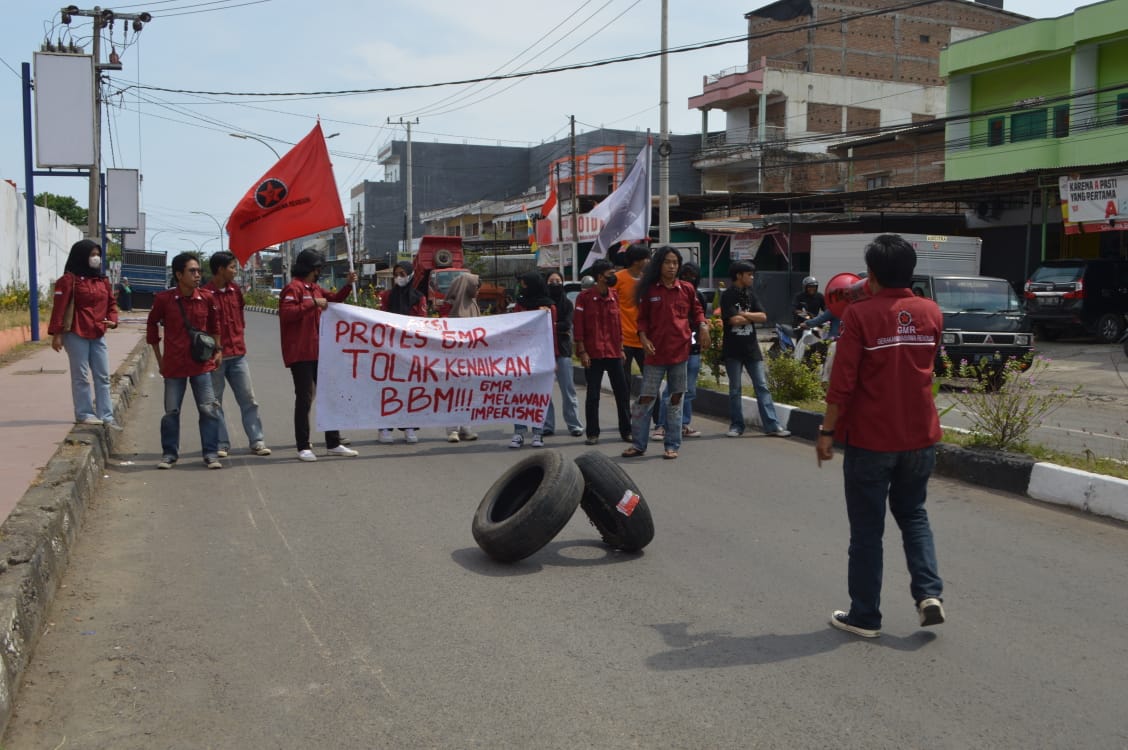 Sehingga, hanya satu jalur yang dapat dilalui oleh kendaraan, yang melintas. Mereka membentangkan spanduk bertuliskan “Aksi protes GMR Tolak Kenaikan BBM GMR Melawan Imperisme” ,kemudian para Demonstran menyampaikan orasinya secara bergantian.