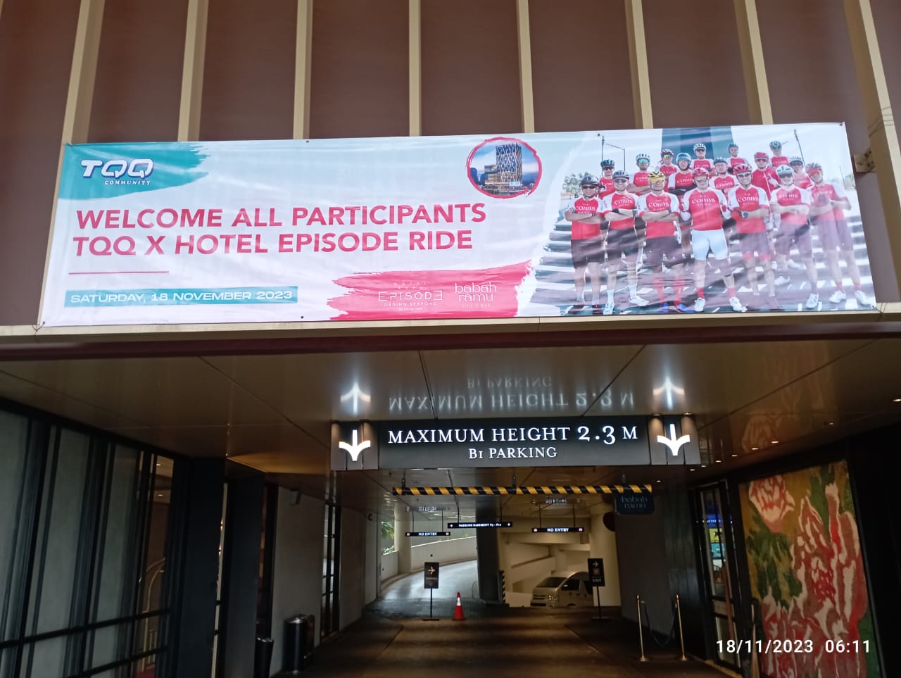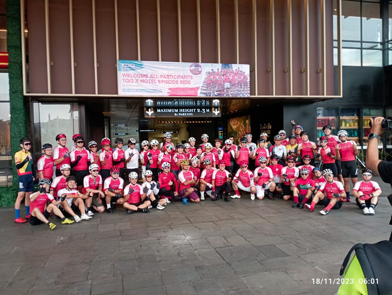 “Welcome All Participants TQQ X Hotel Episode Ride”. Kegiatan Club bersepeda dari TQQ Comunity sekitar hampir 200 anggota mengikuti kegiatan ini dengan mengambil rute sekitaran gading serpong BSD sekitarnya.