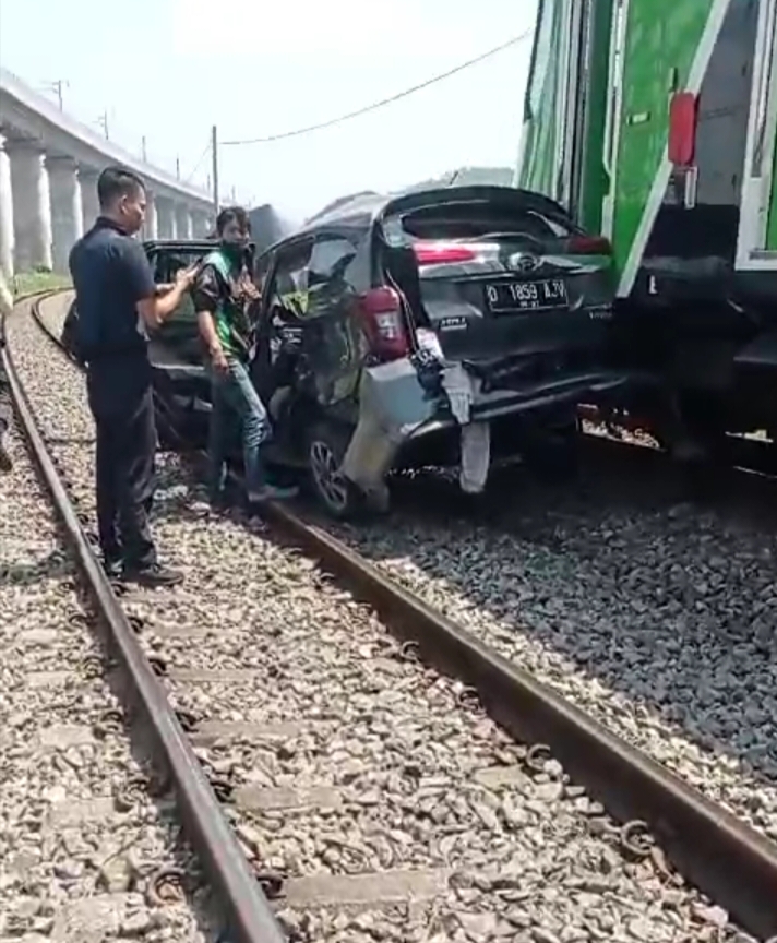 Kejadian, berdasarkan saksi mata pada hari Kamis, (14/12/2023) terdengar dentuman keras yang ternyata ada tabrakan antara 1 unit Mobil jenis Sigra dengan KA feeder (Kereta Cepat Whoosh) hingga terseret 100 meter. “ungkapnya.