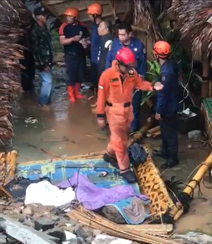 Diduga kejadian tersebut akibat dari intensitas hujan yang cukup tinggi disertai dengan angin kencang dan mengakibatkan tanah longsor dan menimpa saung di RM Saung Tiga.