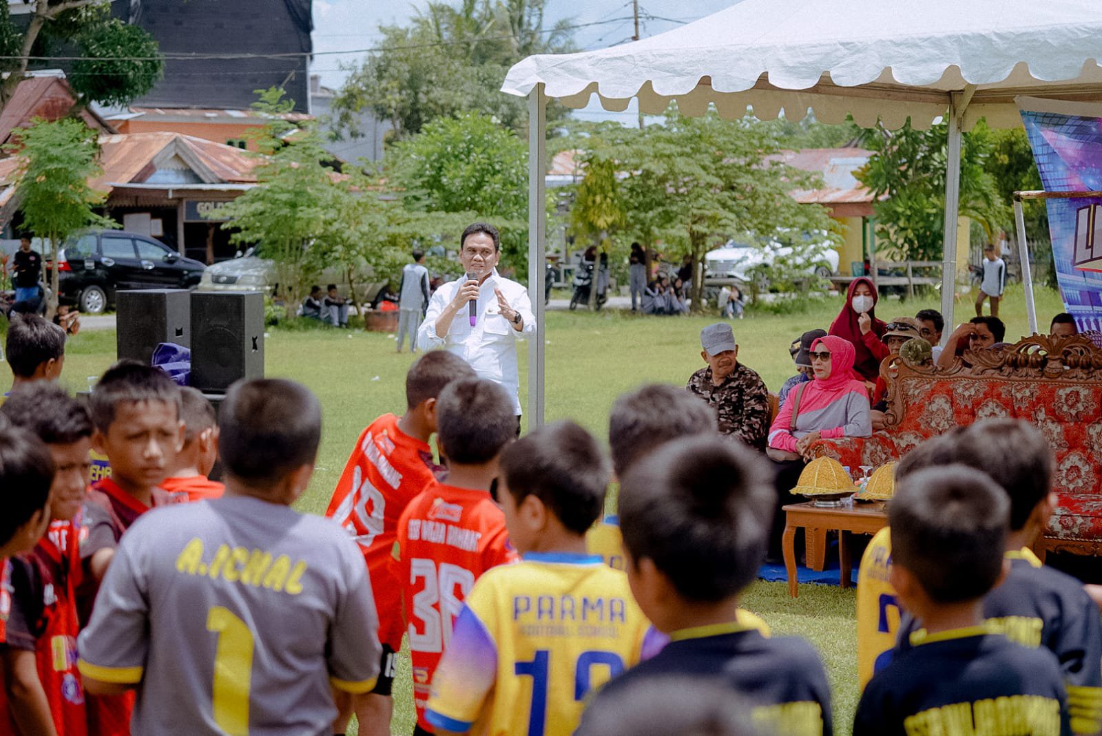 Bupati Barru H.Suardi Saleh membuka turnamen sekaligus kick off atau tendangan bola pertama, yang didampingi Sekretaris Dinas Diksparpora, Para Staf Ahli, Kabid Humas dan IKP Kominfo Pemkab Barru, Lurah Palanro, Lurah se Kec.Mallusetasi