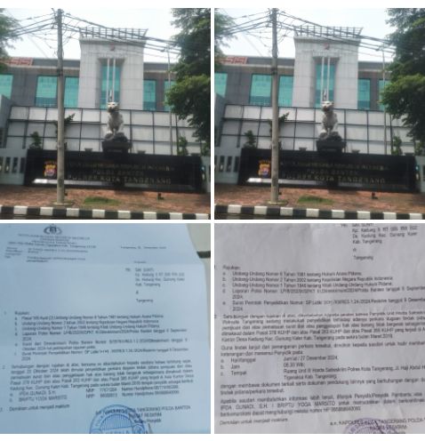 Dalam kesaksiannya korban inisial S menceritakan, dapat surat undangan limpahan dari Polda Banten ke Polres Kota Tangerang untuk memberikan informasi hasil penyelidikan/Lidik, dan meminta wawancara klarifikasi perkara.