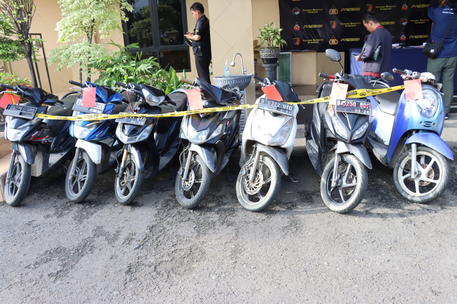 Atas pengungkapan ini kami berhasil turut mengamankan beberapa barang bukti diantaranya sebanyak 7 unit sepeda motor, 1 (satu) buku BPKB sepeda motor Honda Vario, nopol B-4988-