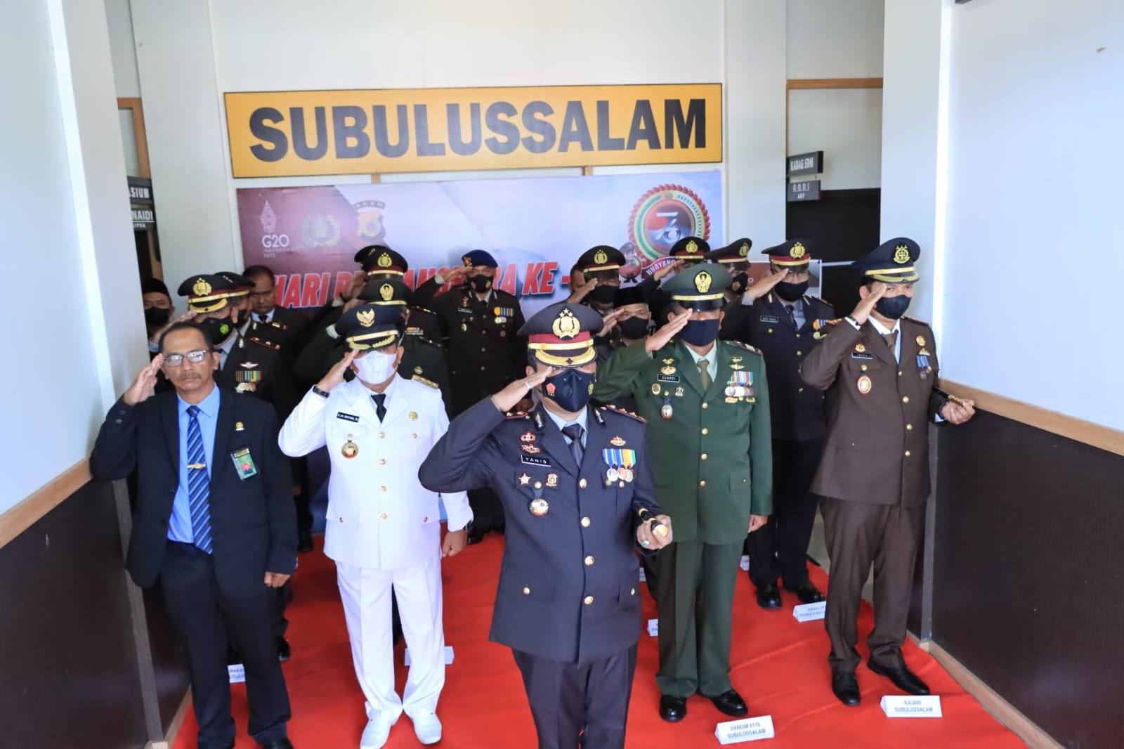 POLRES SUBULUSSALAM | Kapolres Subulussalam AKBP Muhammad Yanis,. S.I.K,. M.H mengikuti Giat Upacara Virtual HUT Bhayangkara Ke 76 Tahun 2022 Polres Subulussalam, Selasa (05/07/2022).